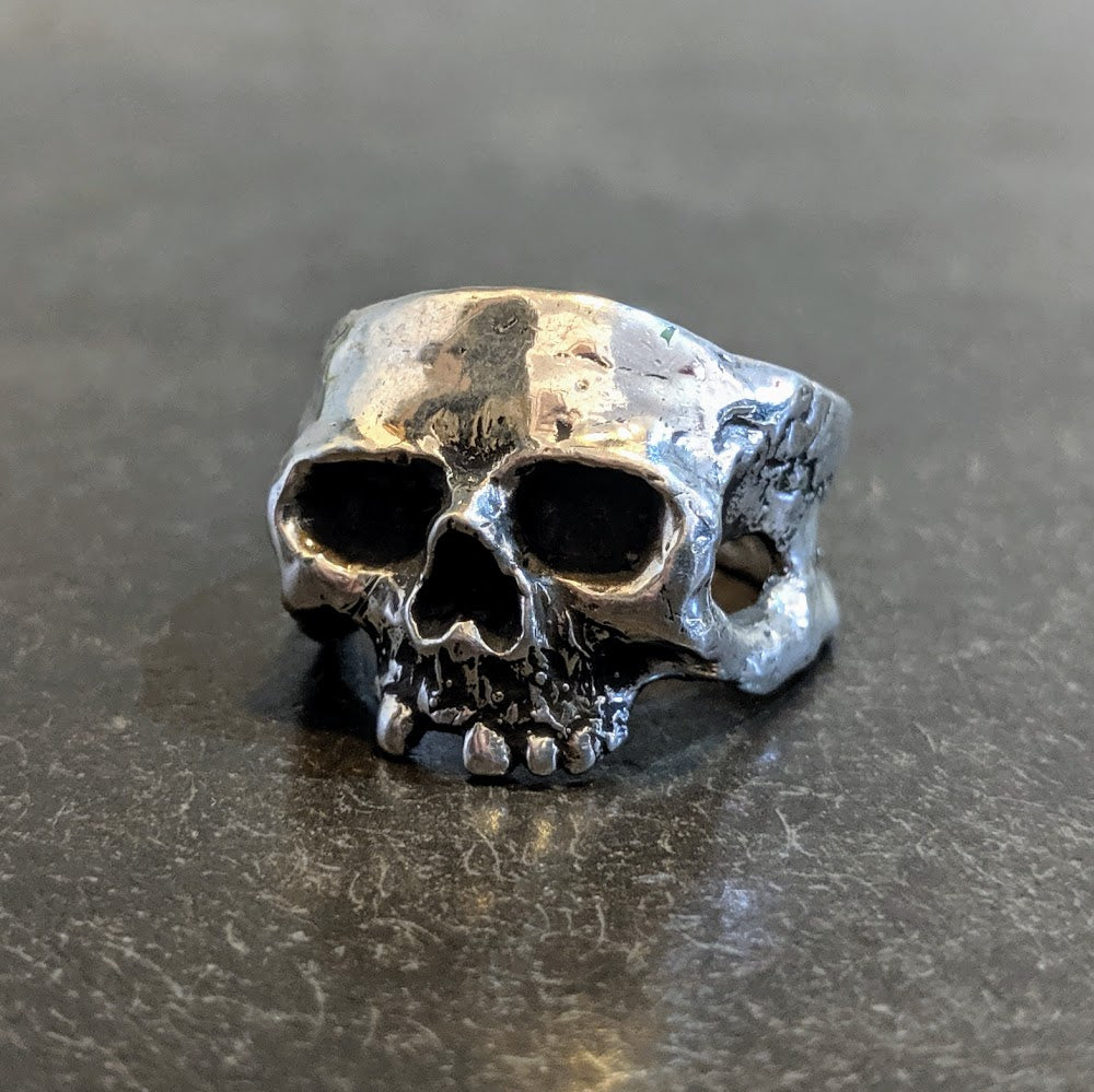 My first skull ring design. Still kicking strong. This skull ring has a unique personality and strong character. Looks badass in any size. Solid sterling silver.